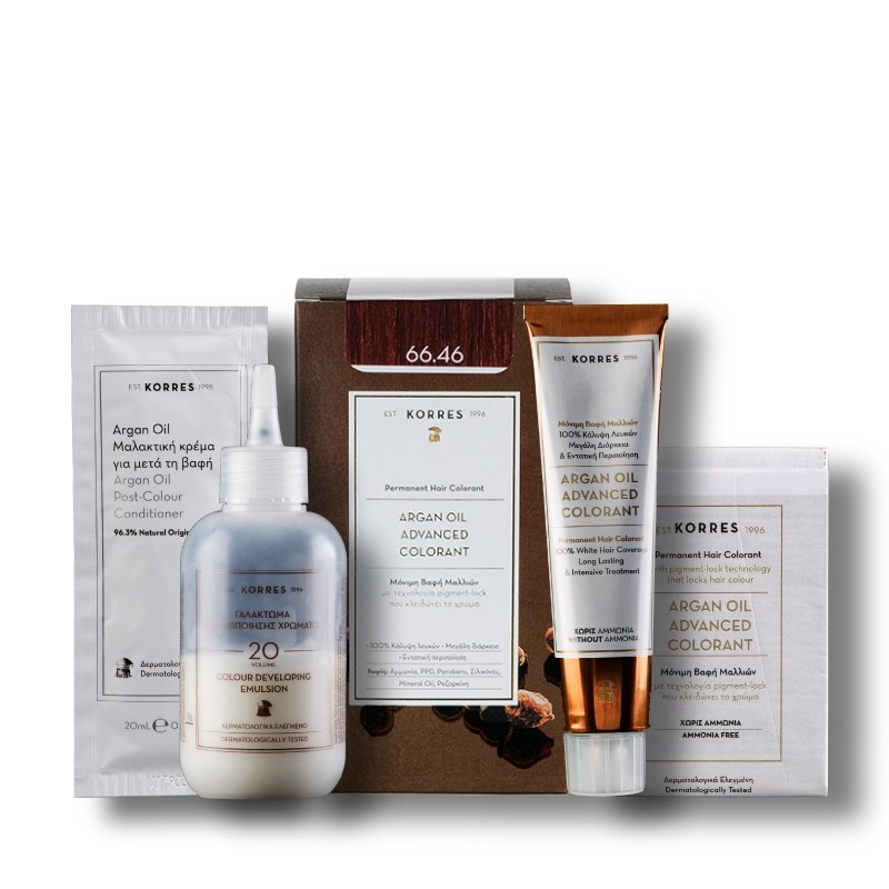 LE KIT COLORATION CONTIENT : 1 flacon Coloration crème-gel 50ml - 1 émulsion révélatrice de couleur (flacon avec applicateur) 75ml - 1 après-shampooing fixateur Huile d’Argan 20ml - 1 notice - 1 paire de gants.