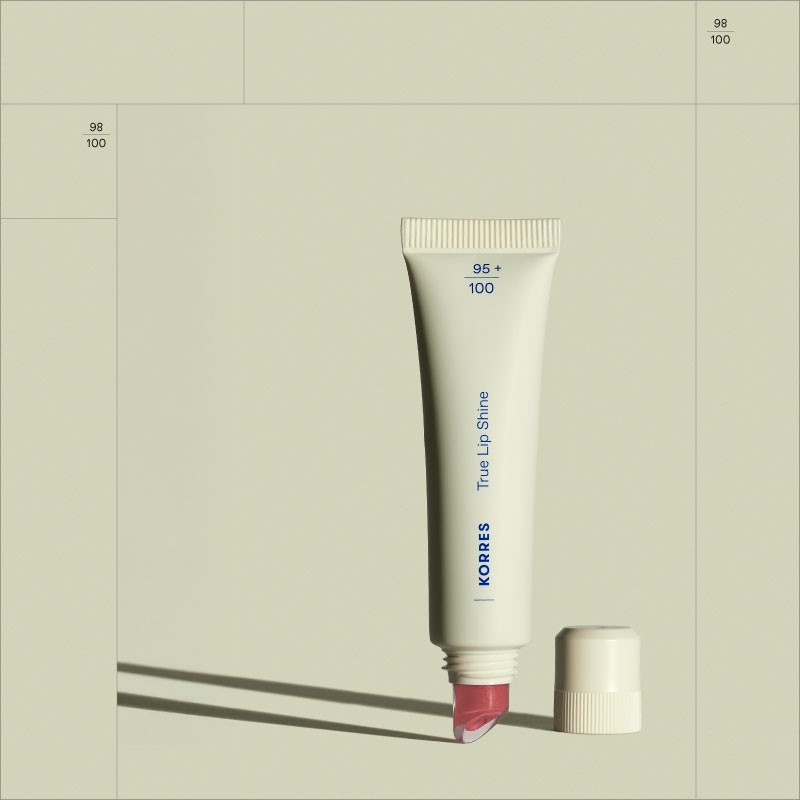 Astuce de Sophia KORRES Make-up Artist : Pour un effet lèvres pulpeuses, déposez une touche de True Lip Shine uniquement au centre des lèvres.
