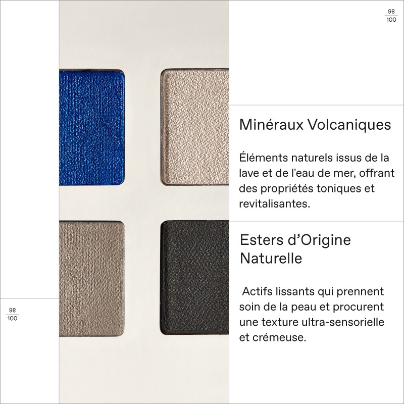 Utilisez une petite quantité de produit et estompez avec un petit pinceau à ombre à paupières. Appliquez les teintes seules ou en combinaison pour des looks infinis.