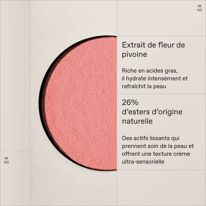MICA, CAPRYLIC/CAPRIC TRIGLYCERIDE, OCTYLDODECYL STEAROYL STEARATE, SYNTHETIC FLUORPHLOGOPITE, SILICA, STEARALKONIUM HECTORITE, ETHYLHEXYLGLYCERIN, DEHYDROACETIC ACID, LAUROYL LYSINE, PROPYLENE CARBONATE, TIN OXIDE, TRIETHOXYCAPRYLYLSILANE, TOCOPHEROL, PAEONIA OFFICINALIS FLOWER EXTRACT, MAY CONTAIN/PEUT CONTENIR [+/-]: CI 77891/TITANIUM DIOXIDE, CI 77491/IRON OXIDES, CI 77492/IRON OXIDES, CI 77499/IRON OXIDES, CI 19140/YELLOW 5 LAKE, CI 15850/RED 7 LAKE, CI 15850/RED 6. -