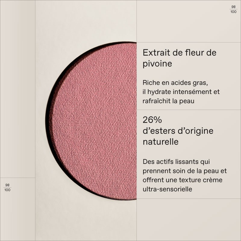MICA, CAPRYLIC/CAPRIC TRIGLYCERIDE, OCTYLDODECYL STEAROYL STEARATE, SILICA, STEARALKONIUM HECTORITE, ETHYLHEXYLGLYCERIN, DEHYDROACETIC ACID, LAUROYL LYSINE, PROPYLENE CARBONATE, TOCOPHEROL, PAEONIA OFFICINALIS FLOWER EXTRACT, MAY CONTAIN/PEUT CONTENIR [+/-]: CI 77891/TITANIUM DIOXIDE, CI 77491/IRON OXIDES, CI 77492/IRON OXIDES, CI 77499/IRON OXIDES, CI 19140/YELLOW 5 LAKE, CI 15850/RED 7 LAKE, CI 77007/ULTRAMARINES, CI 15850/RED 6, CI 15985/YELLOW 6 LAKE -