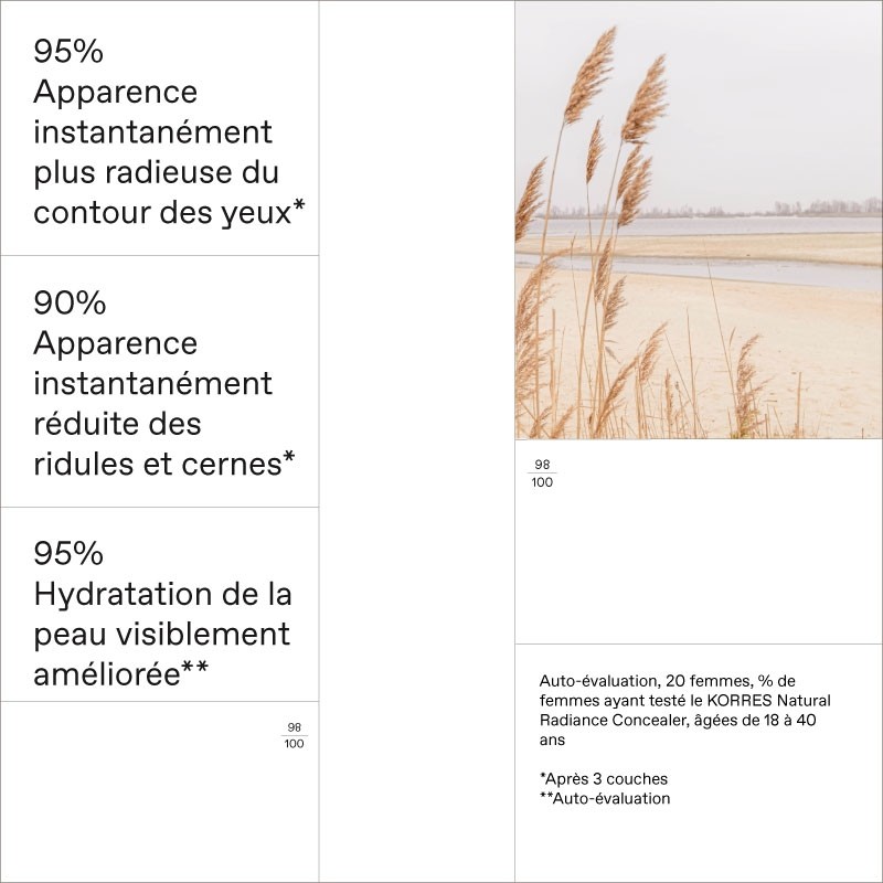 Appliquez le Natural Radiance Concealer sous les yeux, autour du nez et sur les imperfections. Tapotez du bout des doigts ou au pinceau pour fondre la matière avec le reste du maquillage. Commencez par le coin interne de l’œil et estompez vers l’extérieur.