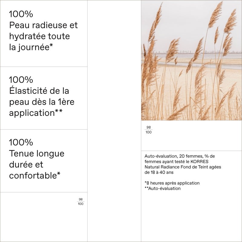 % de femmes ayant testé le Natural Radiance Fond de Teint, 20 femmes âgées de 18 à 40 ans.