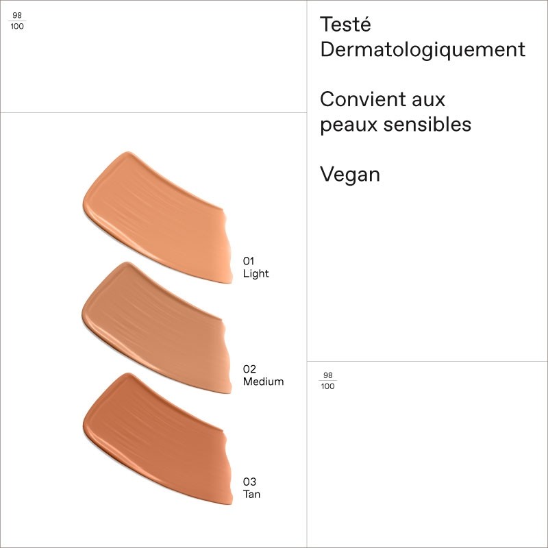 Bien agiter avant utilisation. Appliquez une petite quantité de fond de teint au pinceau ou aux doigts. Commencez par le centre du visage et estompez vers l’extérieur en effectuant des mouvements circulaires. N’oubliez pas de bien lisser au niveau du cou et de la mâchoire pour un fini naturel.