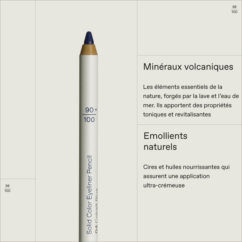 Crayon eyeliner crémeux haute définition en un seul geste, longue tenue. Infusé de Minéraux Volcaniques et d’Émollients Naturels pour une tenue douce et confortable tout au long de la journée.