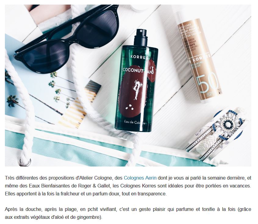 22 Juillet 2017Kléo Beauté nous présente son coup de coeur fraicheur de l'été : l'eau de cologne Korres Coconut Sand.
