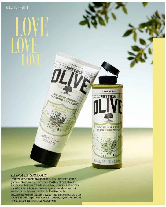 Du 30 Juin au 6 Juillet 2017"Inspirée des rituels traditionnels des Cretoises, cette gamme place L'olivier bio - ses feuilles et ses olives antioxydantes, sources de minéraux, vitamines et acides aminés, son huile nourrissante -, au coeur de soins qui sentent subtilement l'été et la Méditerranée"