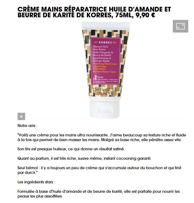 Crème main réparatrice huile d'amande et beurre de karité, 9,90€