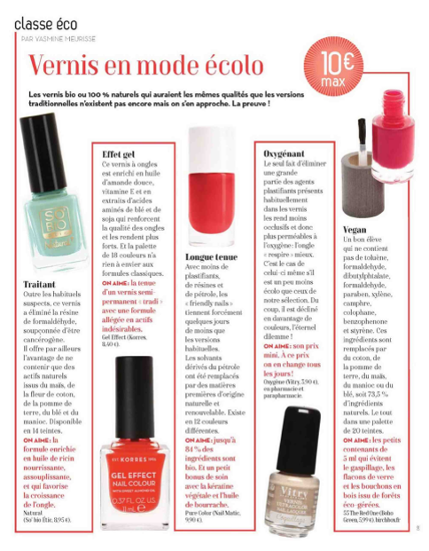 Août 2018"Ce vernis à ongles est enrichi en huile d'amande douce, vitamine E et en extraits d'acides aminés de blé et de soja qui renforcent la qualité des ongles et les rendent plus forts. Et la palette de 18 couleurs n'a rien à envier aux formules classiques." Vernis Gel Effect, 9,90 les 11ml