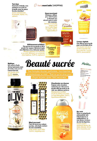 Septembre / Octobre 2018"Son extrait d'huile d'olive hydratante vient de Crète, tout comme l'extrait de miel" Gel douche Olive et Miel Pure Greek Olive 8,90€