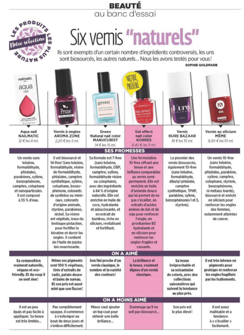 "Une formulation 10-free offrant une tenue et brillance comparable au vernis semi-permanant. Elle est enrichie en huile d'amande douce qui lui permet de ne pas s'écailler, en extrait d'acides aminés de blé et de soja pour renfocer l'ongle, en provotamines B5 hydratante et en silicium pour renforcer les ongles fragiles et cassants." Vernis Gel Effect, 9,90 les 11ml