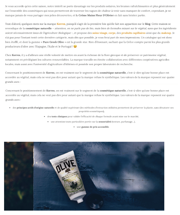 Needs and Moods adore la crème mains fleur d'olivier de Korres qu'elle décrit dans un bel article à retrouver ici ! Crème mains fleur d'olivier, 9,90€ les 75ml