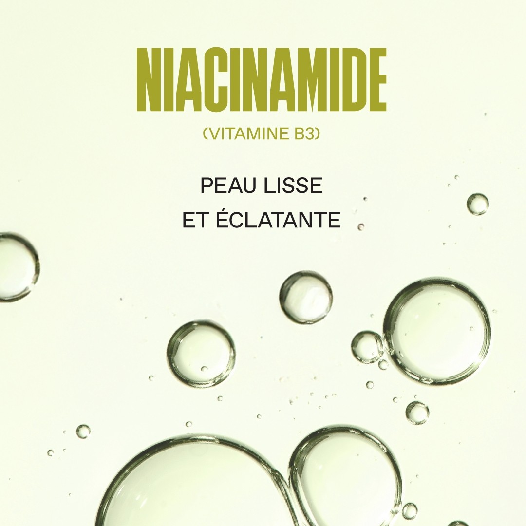 • NIACINAMIDE : Une forme stable de Vitamine B3 qui cible les imperfections, pour une peau lisse et éclatante.
